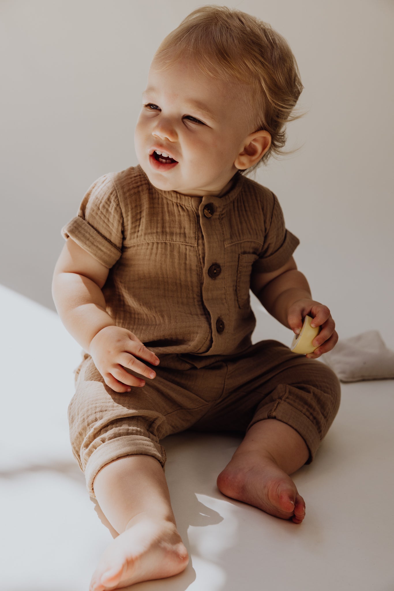 Bio-Musselin Strampler für Babys mit Kokosknöpfen – natürlich, weich & nachhaltig