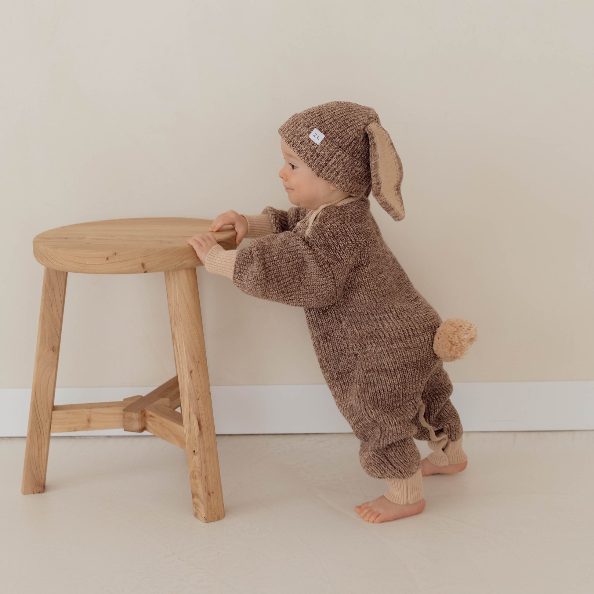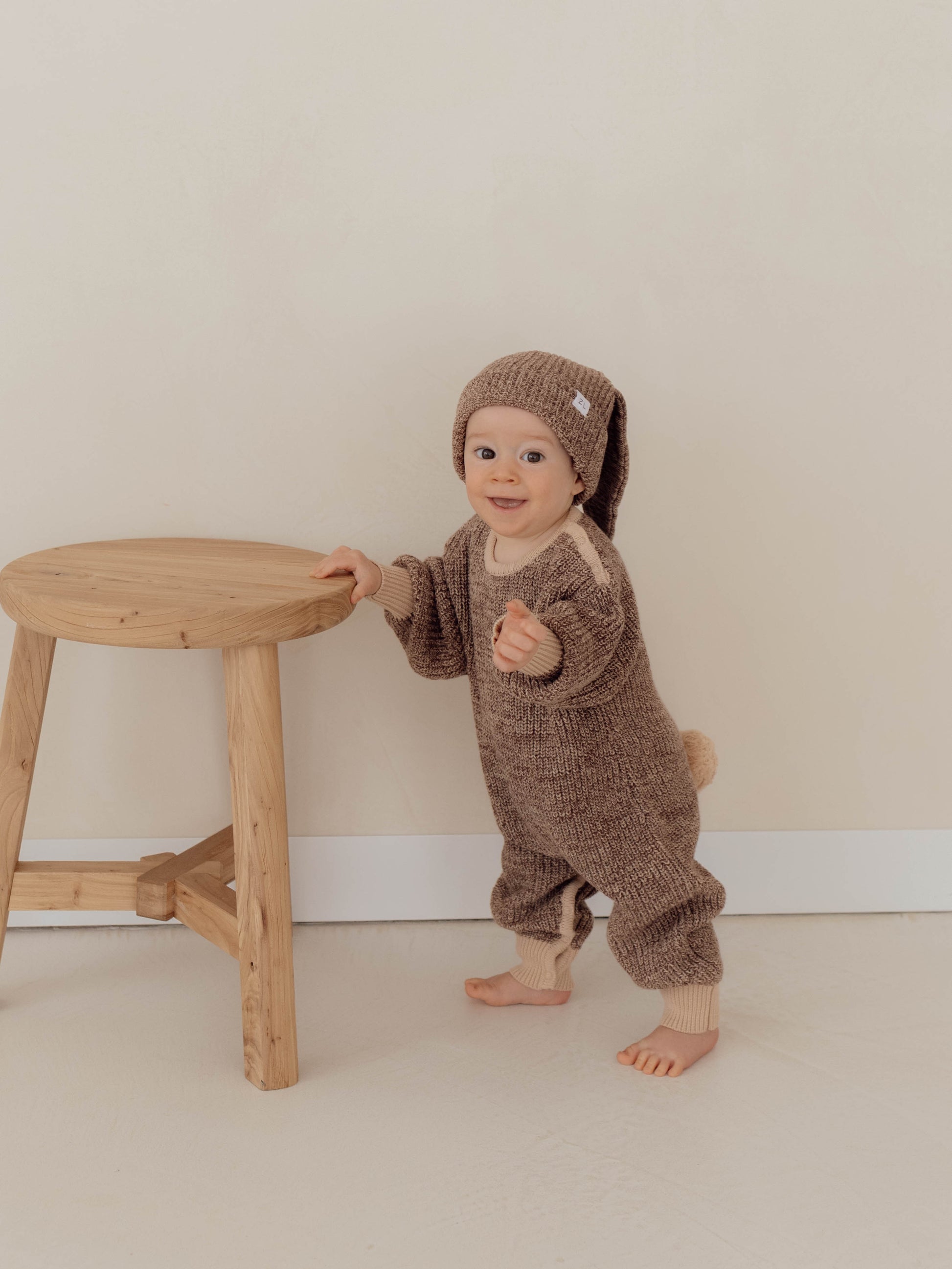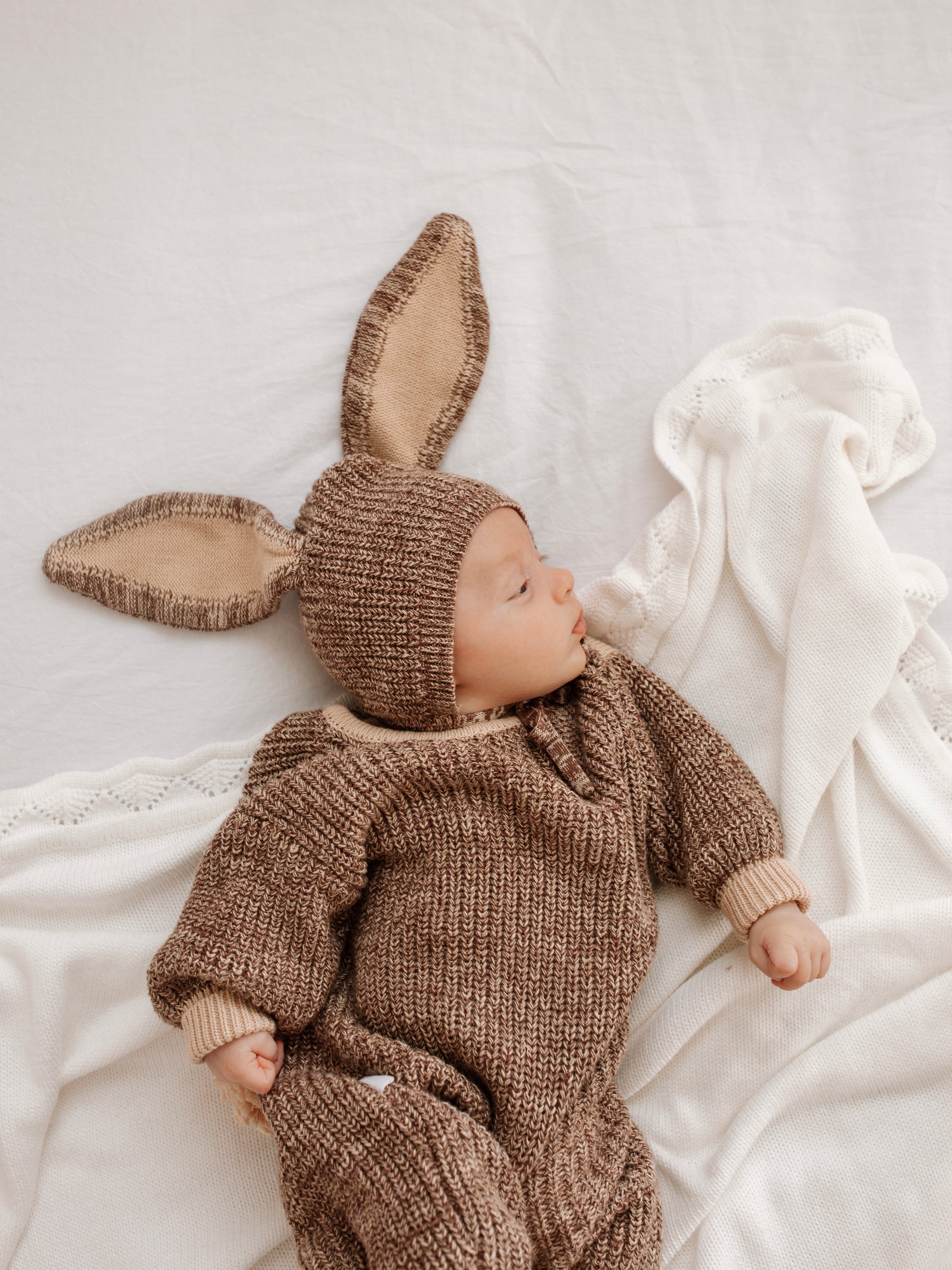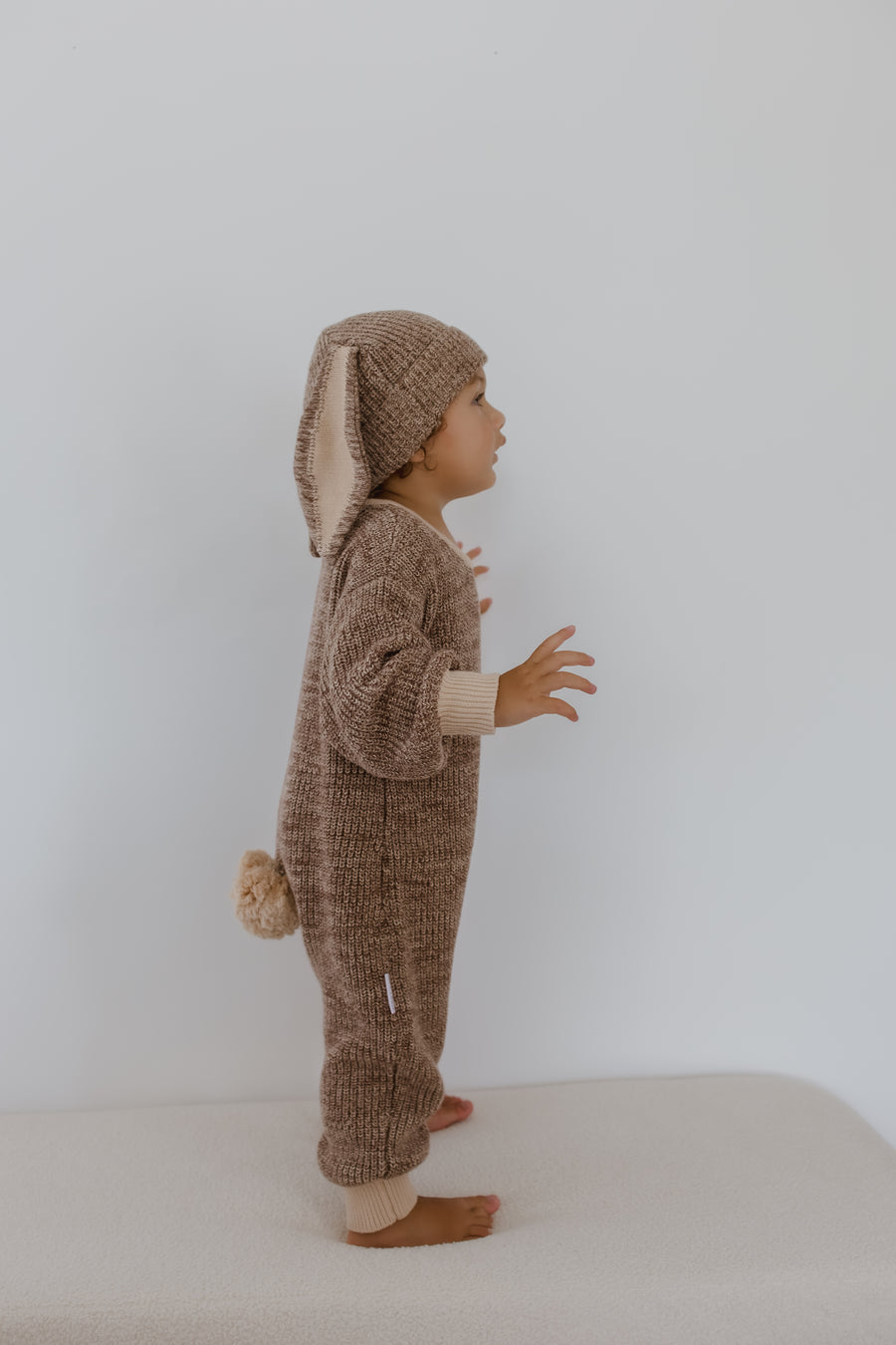 Niedlicher Strickromper aus Baumwolle – mit abnehmbarem Hasenschwanz-Bommel