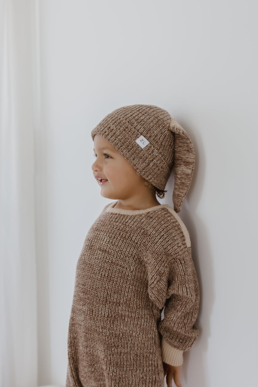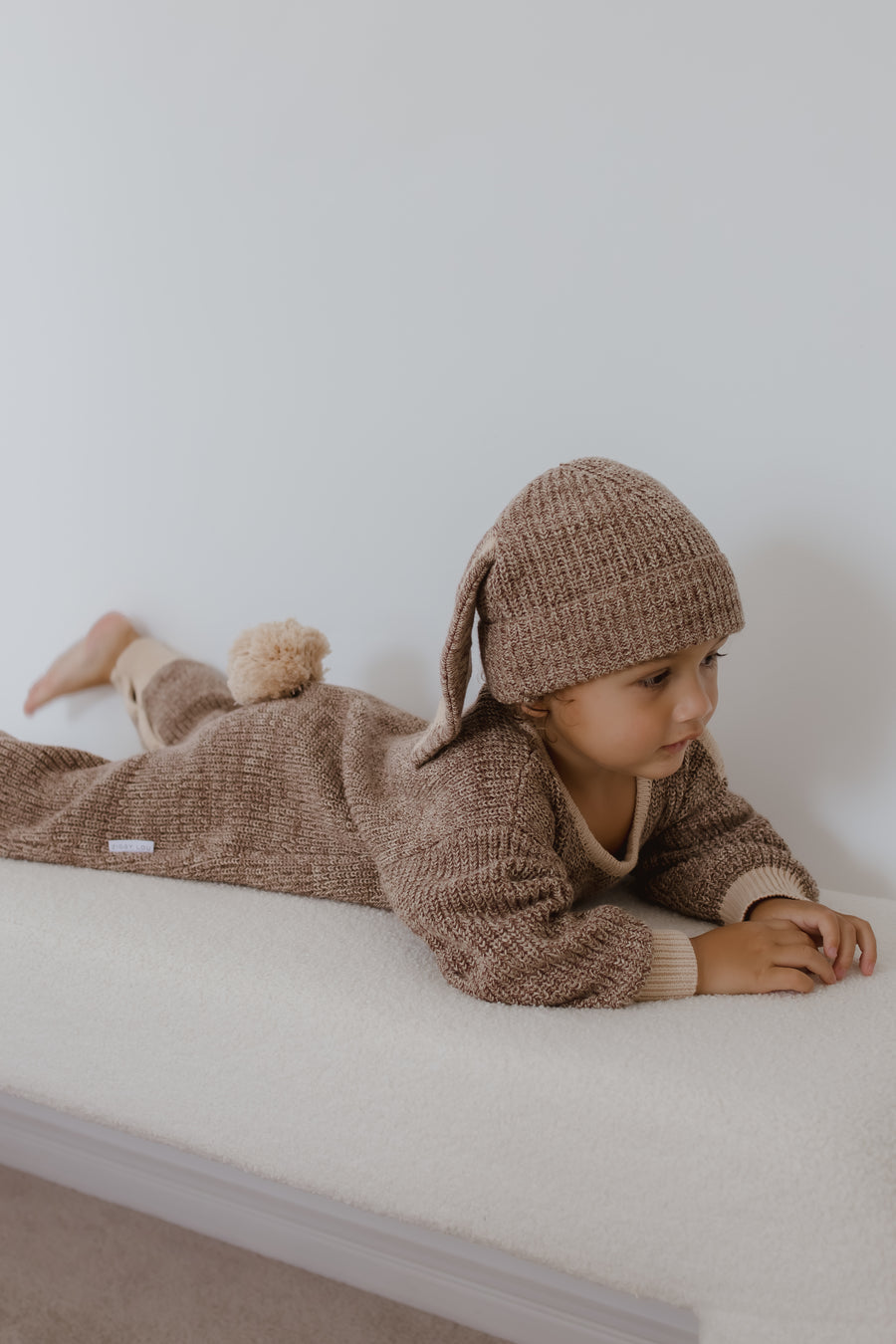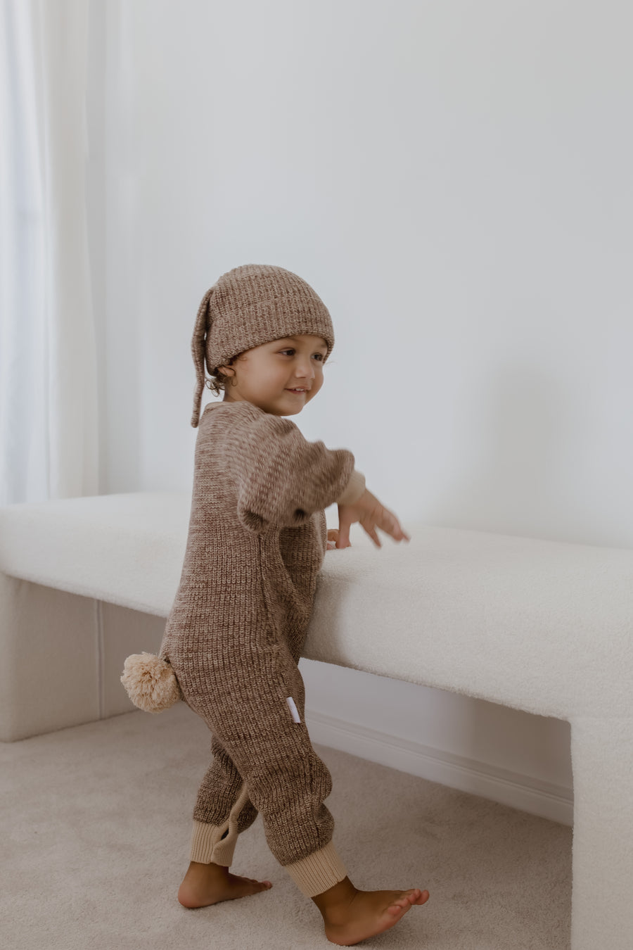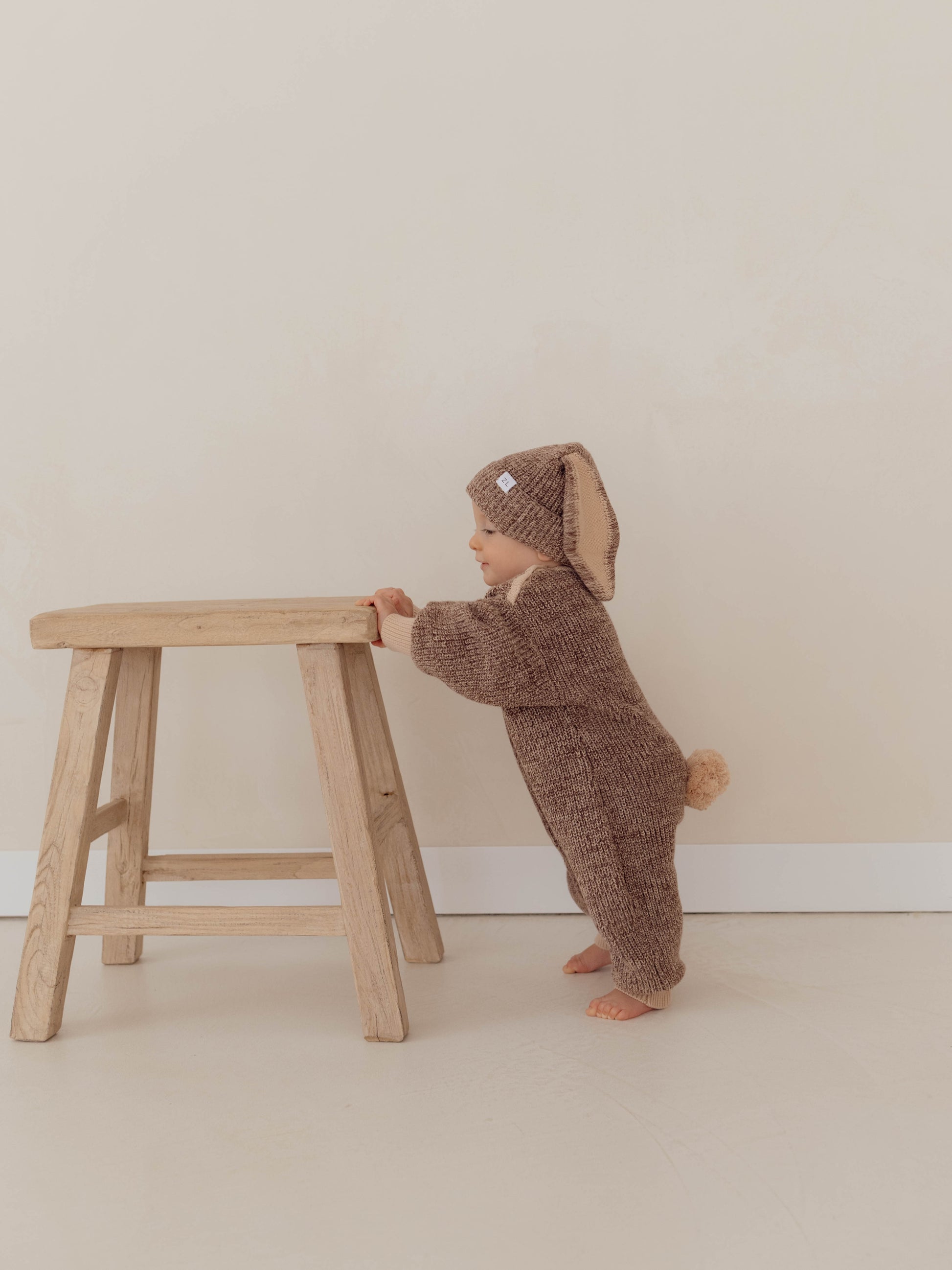 Niedlicher Strickromper aus Baumwolle – mit abnehmbarem Hasenschwanz-Bommel