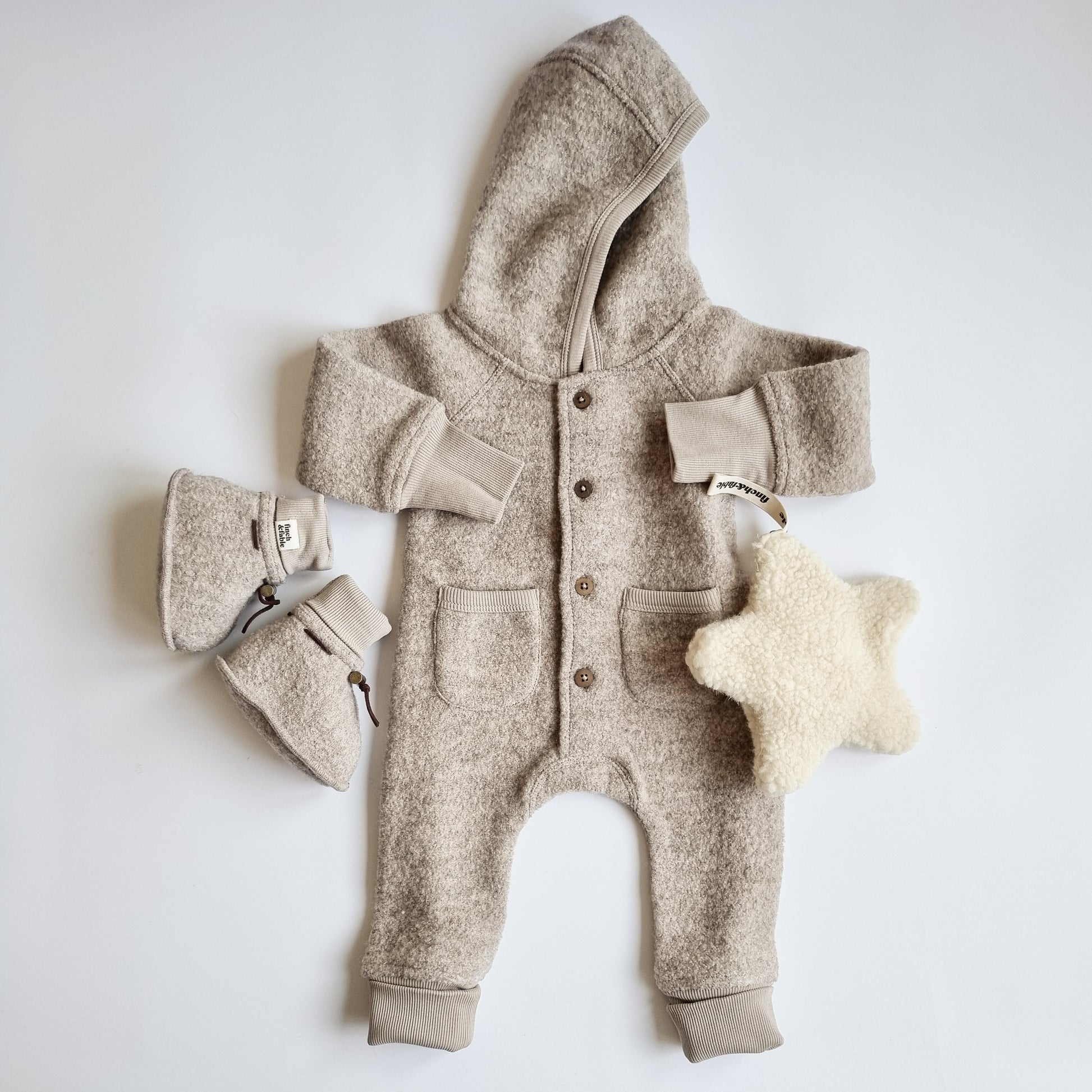 Dieser Wollwalk-Einteiler ist aus superweicher und dehnbarer Merinowolle gefertigt und bietet Wärme und Schutz, wenn dein Kleines draußen den kalten Temperaturen ausgesetzt ist. Dieser Einteiler aus Merinowolle hat einen Knopfverschluss für einfaches An- und Ausziehen und extra große Rippbündchen, um Babys Hände und Füße zu schützen. Funktionelle Taschen. Kombinieren Sie ihn mit unseren Wollschühchen und dem Wollhalstuch für ein komplettes Outfit.